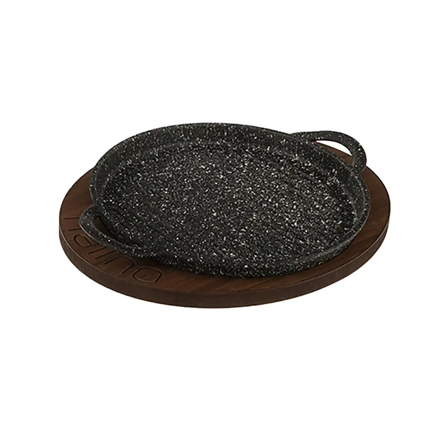 تابه گریل چدن نالینو مدل Padella سایز 26: تابه گریل نالینو مدل Padela سایز 26 از جنس چدن ساخته شده است. وجود زير قابلمهی چوبی باعث شده تا ظرف را با سهولت بیشتر برای به روی سفره منتقل و غذای درون آن را سرو کرد. روی سطح چدنی تابه شيارهايی وجود دارد كه نقش تيرهتر بروی غذای گريل شما ایجاد میکند که باعث شده غذا زيباتر و حرفهای تر طبخ گردد. براي بدست آمدن نتيجه بهتر از پخت لازم است قبل از قرار گرفتن مواد روی ظرف ،آنرا خوب گرم كنيد و براي بالا بردن عمر ظرف نیز، در زمانی که داغ است آن را زير آب نگيريد و به يكباره سرد نكنيد. ناگفته نماند که در هنگام آشپزی از بهكار بردن قاشق يا ابزار آشپزی فلزی و نوك تيز اجتناب فرماييد.