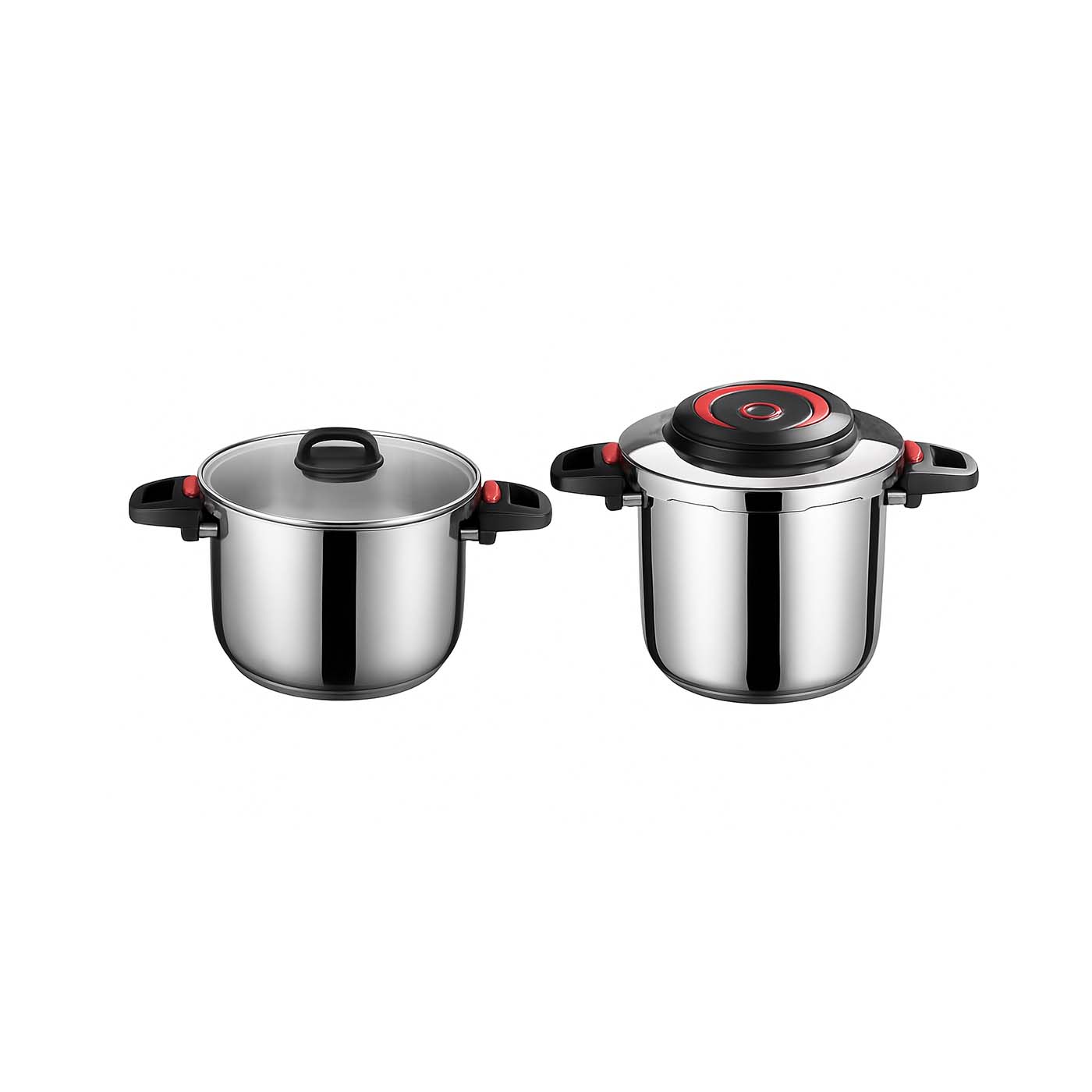 زودپز دوقلو ریور مدل 3840 ترکیبی از طراحی زیبا، عملکرد سریع، ایمنی بالا و کیفیت ساخت فوقالعاده است. با داشتن دو دیگ جداگانه و ظرفیت مجموع ۱۰ لیتر، این محصول گزینهای مناسب برای خانوادههایی است که به پختوپز سریع، سالم و آسان اهمیت میدهند. رنگ قرمز و مشکی جذاب، بدنه استیل براق و کارکرد بیصدا، این زودپز را به یکی از کاربردیترین و چشمنوازترین لوازم آشپزخانه شما تبدیل میکند.