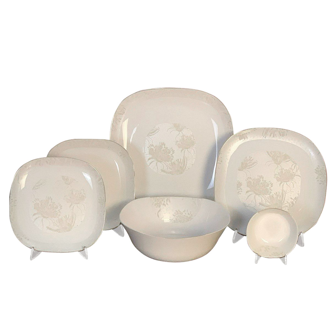 ساخته شده از آرکوپال سبک و مقاوم، این سرویس در برابر حرارت، ضربه و شست‌وشوی مکرر دوام بالایی دارد. شامل ۲۶ پارچه کاربردی برای پذیرایی ۶ نفر، این مجموعه مناسب استفاده روزمره و مهمانی‌های رسمی است. ترکیبی از ظرافت، کیفیت و عملکرد در یک سرویس شیک و ماندگار.