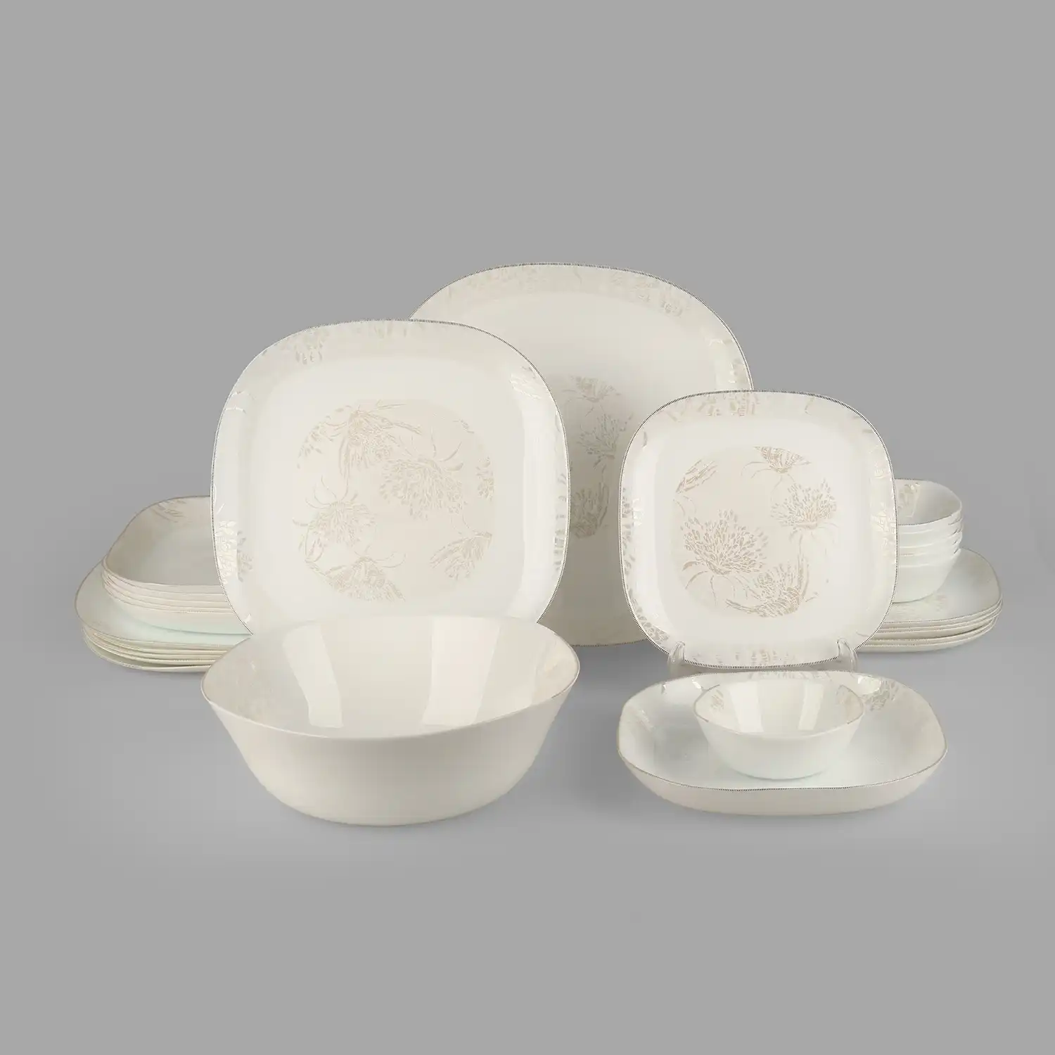 سرویس آرکوپال ۲۶ پارچه لنوکس مدل مربع کورل لورکس بژ با طراحی مینیمال و رنگ بژ ملایم، انتخابی زیبا و چشمنواز برای چیدمان میز غذا است. طرح مربع مدرن این سرویس، در کنار درخشش ظریف لورکس، جلوهای خاص و متفاوت به آن بخشیده و مناسب سلیقههای خاصپسند است.ساخته شده از آرکوپال سبک و مقاوم، این سرویس در برابر حرارت، ضربه و شستوشوی مکرر دوام بالایی دارد. شامل ۲۶ پارچه کاربردی برای پذیرایی ۶ نفر، این مجموعه مناسب استفاده روزمره و مهمانیهای رسمی است. ترکیبی از ظرافت، کیفیت و عملکرد در یک سرویس شیک و ماندگار.