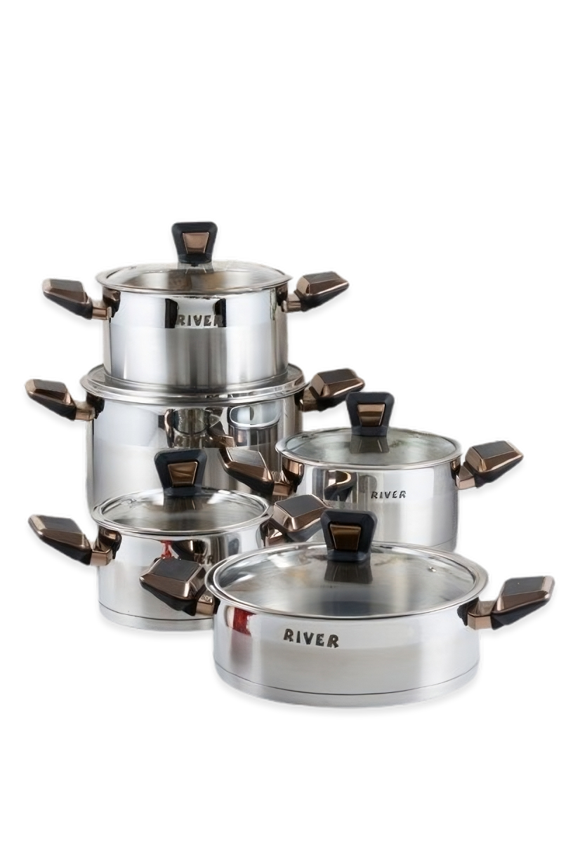 سرویس قابلمه 10 پارچه ریور باکلیت استیل رزگلد