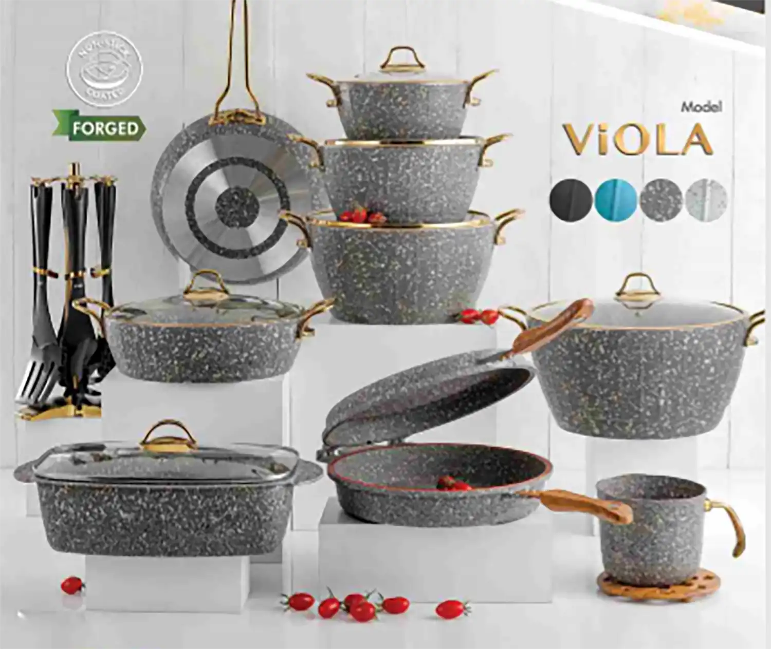 سرویس قابلمه 24 پارچه اویز مدل ویولا با طراحی زیبا و مدرن، انتخابی ایده‌آل برای کسانی است که به دنبال یک سرویس کامل و باکیفیت هستند. این سرویس از جنس چدن گرانیت باکیفیت ساخته شده است و بسیار بادوام و مقاوم بوده و حرارت را به‌طور یکسان پخش می‌کند. همچنین، پوشش گرانیت این قابلمه‌ها نچسب است و به‌راحتی تمیز می‌شود.