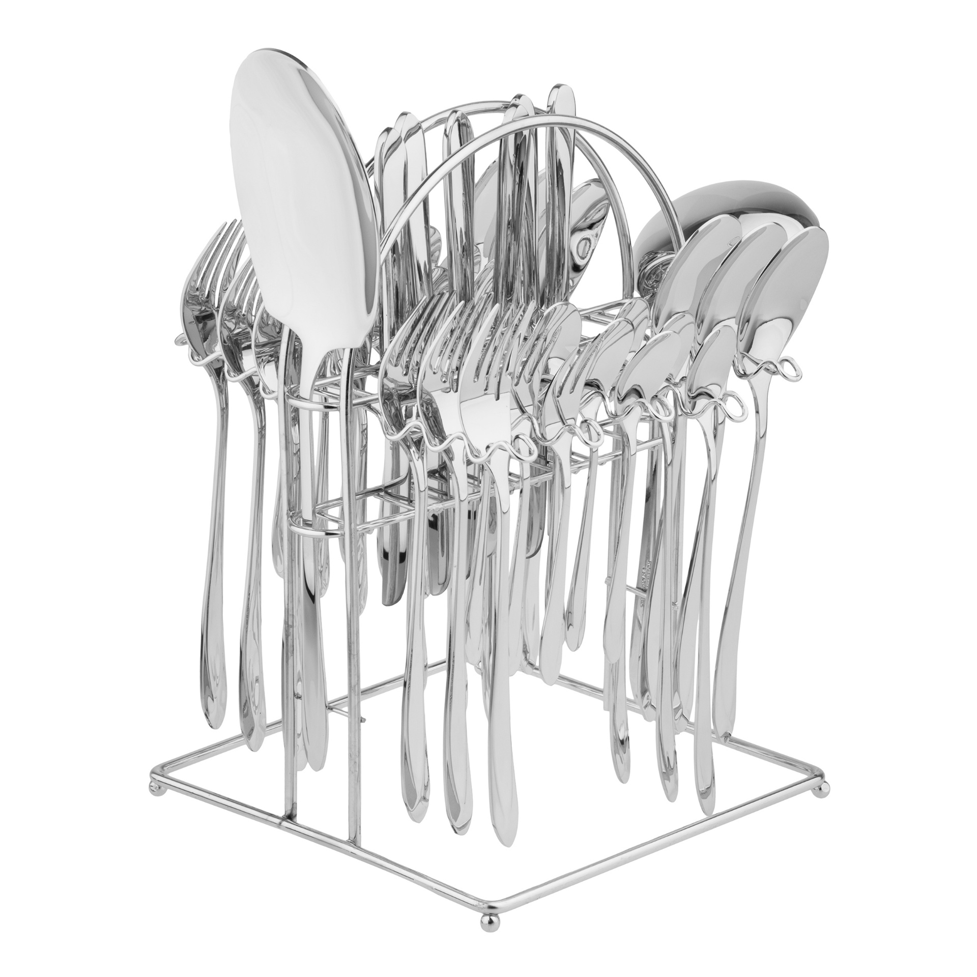 سایر توضیحات قاشق 6 - چنگال 6 – کارد میوه 6 - چنگال میوه 6 - مربا 6 - شربت 6 - کفگیر 1 - ملاقه بزرگ 1 – استند فلزی