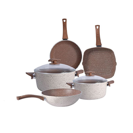 جنس بدنه مقاوم و پوشش نچسب باکیفیت، پخت سالم با کمترین میزان روغن را ممکن میسازد و شستوشو را بسیار آسان میکند. طراحی سبک، خوشدست و هماهنگ با دکور آشپزخانههای مدرن، این سرویس را به گزینهای عالی برای جهیزیه یا نوسازی ظروف آشپزی تبدیل کرده است.
