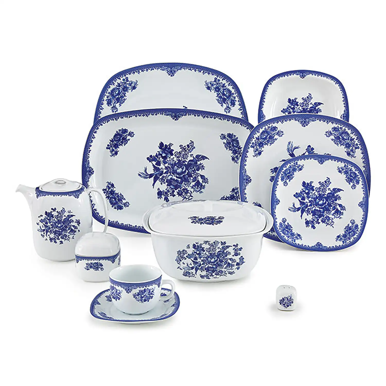 سرویس کواترو 98 پارچه چینی زرین فلورانس سرمه ای درجه یک