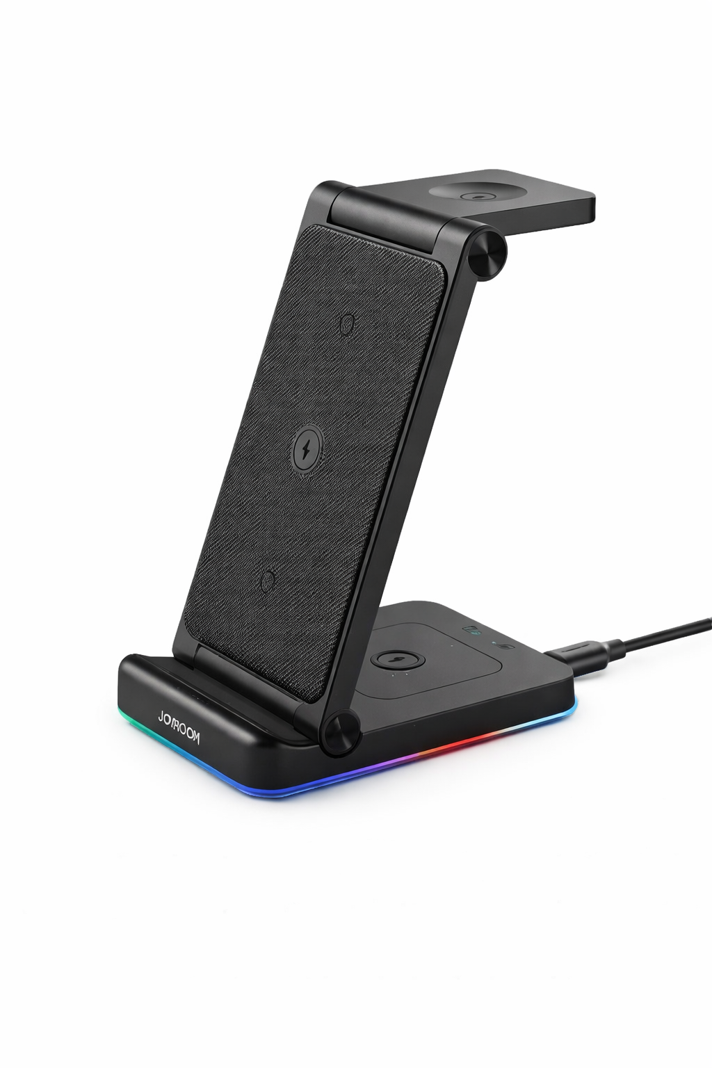 شارژر بیسیم Joyroom JR-WQN01 بهعنوان یک شارژر 3 در 1 شناخته میشود و برای شارژ همزمان گوشی، ساعت هوشمند و هدفون بیسیم طراحی شده است. همچنین فرم تاشو و قابل حمل آن، استفاده از دستگاه را برای جابهجایی و سفر نیز مناسبتر میکند.