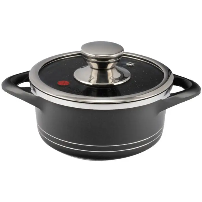 قابلمه تک ام جی اس مدل ایتالیا FLAT B روکشی از جنس گرانیت نچسب دارد که به آشپزی آسان و بیدردسر کمک میکند. درب این محصول تخت از جنس پیرکس است.