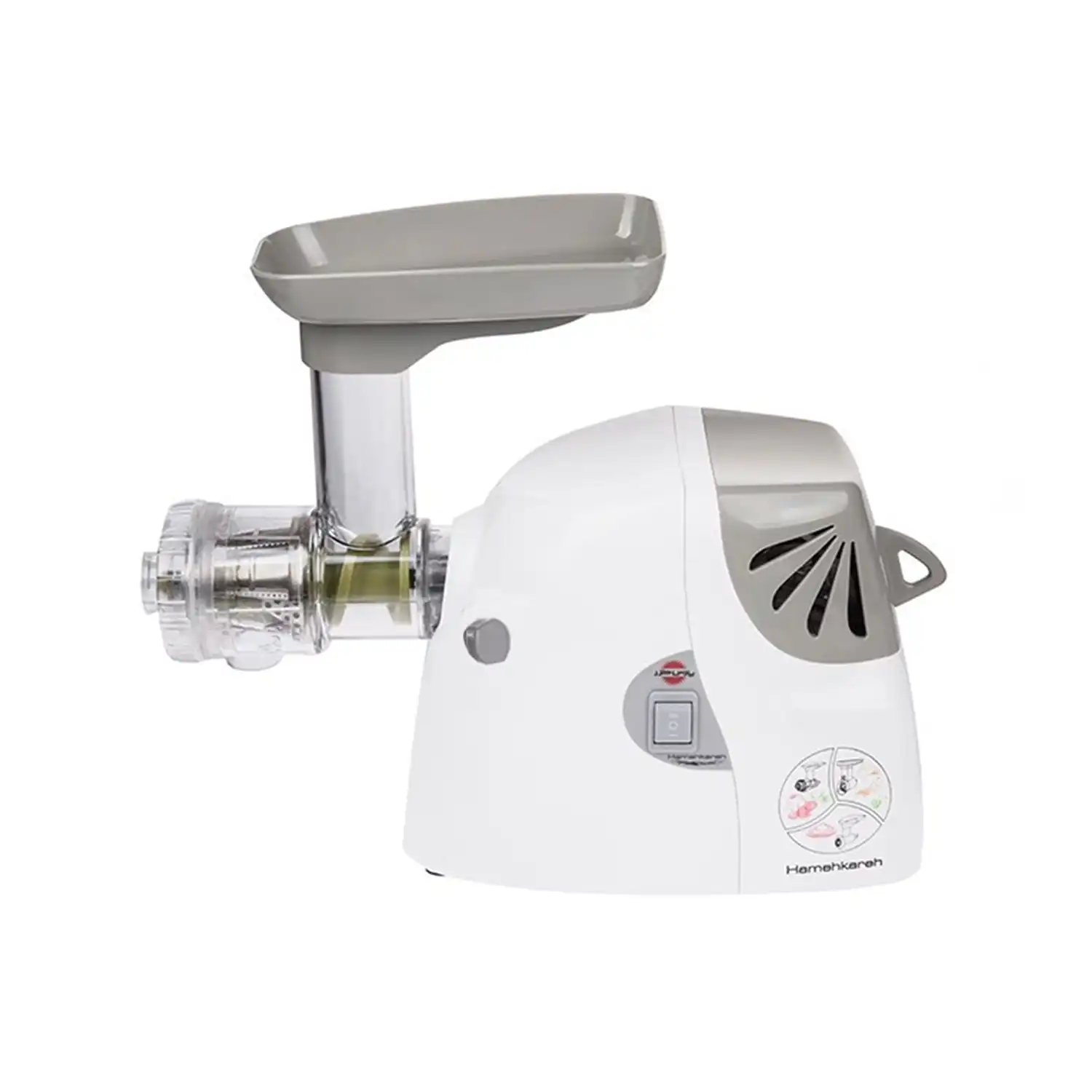 چرخ گوشت پارس خزر مدل همه کاره با توان 1000 وات و خروجی 1200 گرم گوشت در دقیقه، انتخابی ایدهآل برای مصارف خانگی است. این چرخ گوشت با موتور قدرتمند خود، گوشت را بهسرعت و بهراحتی چرخ میکند. این چرخ گوشت علاوه بر چرخ کردن گوشت، از قابلیتهای دیگری مانند قیمه کردن، سبزیخردکن و سوسيسساز بهرهمند شده است. این چرخ گوشت همچنین با دو عدد شبکه مخصوص گوشت چرخ کرده، قیمه و سبزی، قطعه سوسيسساز، ظرف پلاستیکی جهت جمعآوری گوشت چرخ شده و محفظه نگهداری سیم و شبکه مجهز شده است. استفاده از چرخ گوشت پارس خزر بسیار آسان است. این چرخ گوشت دارای کلیدهای روشن/خاموش و معکوس (Reverse) است که به شما امکان میدهد تا در صورت نیاز، مواد غذایی را به عقب برگردانید. چرخ گوشت پارس خزر مجهز به سیستم ایمنی است که در صورت بروز مشکل، موتور را به طور خودکار خاموش میکند. برای تهیه این محصول کافی است با چند کلیک ساده، فروشگاه اینترنتی انتخاب من را همراهی کنید.