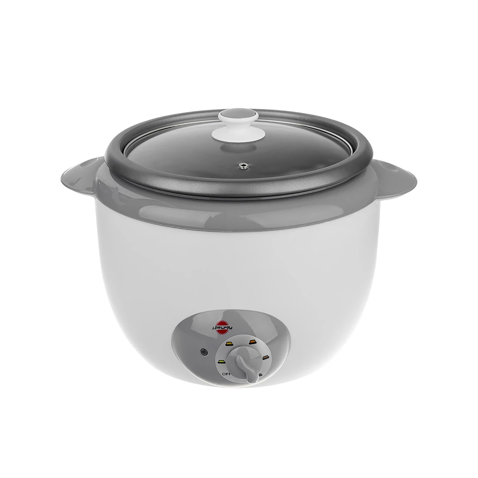 پارس خزر یکی از برندهای برتر ایران در زمینهی تولید لوازم خانه و آشپزخانه است. پلوپز مدل RC-271TSPW از محصولات محبوب این برند است که بدنهای از جنس استیل آبکاری شده دارد. با این محصول میتوانید برای حداکثر ۱۲ نفر غذا آماده کنید. قابلیت یخ خردکن هم باعث شده بتوانید مواد غذایی فریز شده را در سریعترین زمان ممکن آب کنید. مدل RC-271TSPW دارای زمانسنج ترموستات برای پخت خودکار است؛ این ویژگی امکان پخت انواع غذاهای ایرانی را فراهم کرده است. همچنین، حداکثر توان مصرفی این دستگاه ۹۵۰ وات است که قدرت قابل توجهی به شمار میرود. دیگ پلوپز پارس خزر به روکش نچسب تفلون مجهز شده که از چسبیدن برنج جلوگیری میکند و با توجه به پوشش استاندارد آن میتوانید تهدیگ طلایی و خوشمزهای آماده کنید. مدل RC-271TSPW از یک ولوم چرخشی بهره میبرد و به همین دلیل کار با دستگاه بسیار ساده است. با اعتماد به نام و نشان برند پارس خزر میتوانید خرید اینترنتی سریع و مطمئنی را در فروشگاه اینترنتی انتخاب من تجربه کنید.