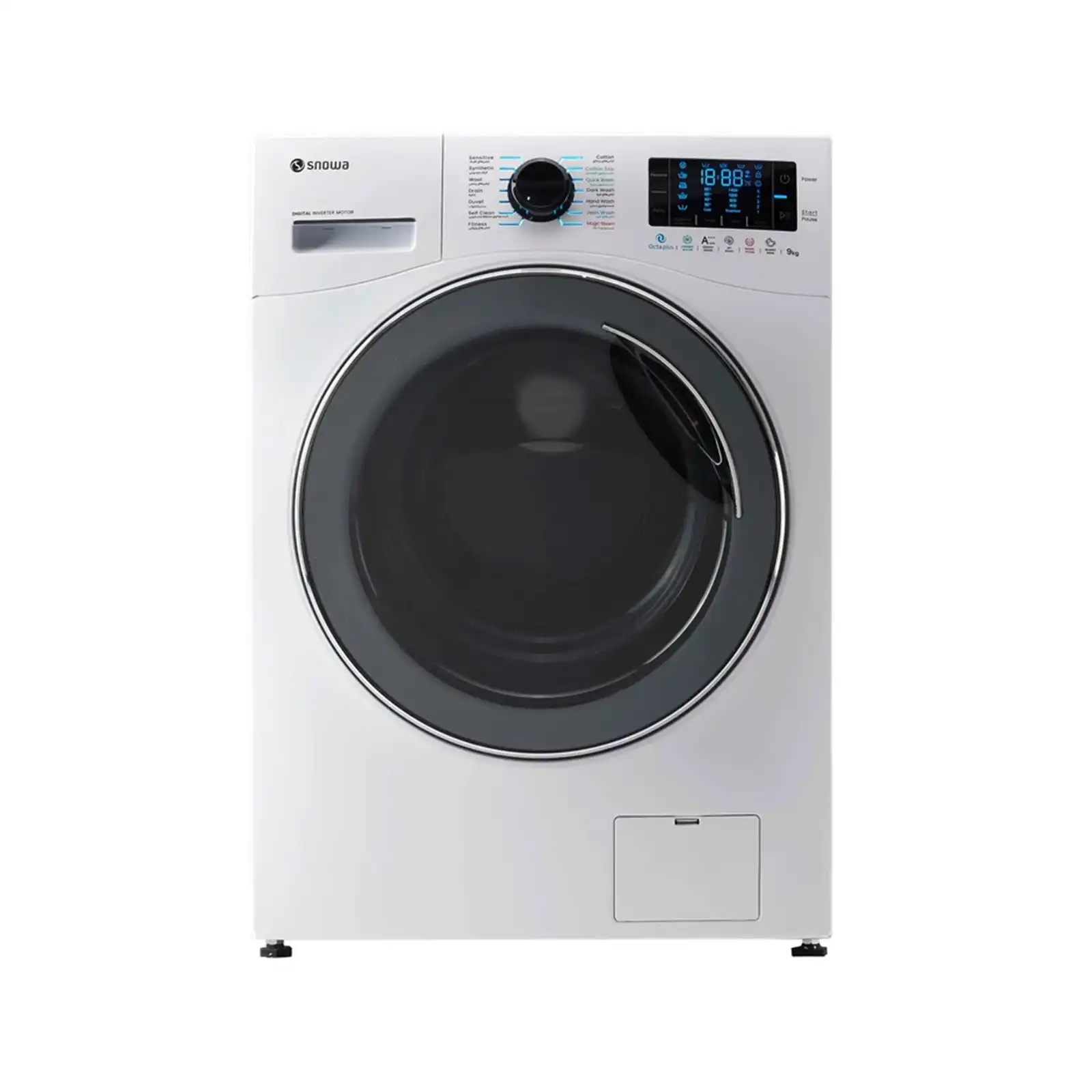 سری اکتا پلاس ماشین لباسشوییهای اسنوا مجموعهای پیشرفته است که به تکنولوژی شستوشو با بخار مجهز شده است. این سری با استفاده از بخار آب، بافت لباس را نرمتر تمیز میکند. به طوری که شرایط اتوکشی را آسان میکند. ماشین لباسشویی مدل SWM-E92 از سری مدلهای کم مصرف و بهینه اسنوا است. این محصول به موتور Q-BLDC Drive مجهز شده که بر اساس میزان و نوع لباسها، سرعت چرخش دستگاه را تنظیم میکند. این موتور با سرعت چرخش ۱۴۰۰ دور در دقیقه کمک بسزایی در شستن انواع لباسها کرده است. این میزان چرخش باعث شده لباسها با کمترین آسیب به الیاف پارچه، البسه را با بهترین کیفیت مورد شستوشو قرار میدهد.